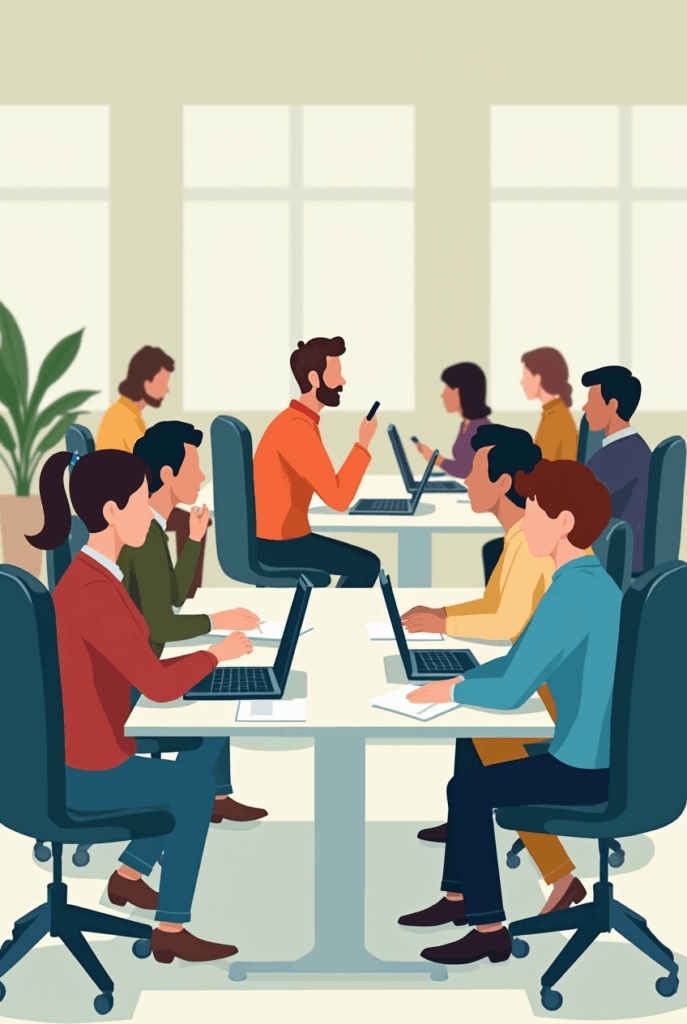 there_are_many_people_sitting_at_a_desk_with_a_laptop_and_a_cell_phone_corporate_animation_style_fl_rnzwarsfuzx0vapiws5z_13